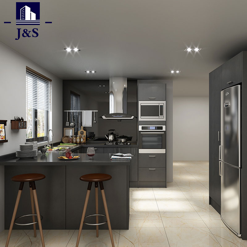 Soláthraímid Caibinéid Cistine Nua-Aimseartha Lacquer Dubh, Is dearadh cistine gan láimhseáil é seo le bailchríoch laicir PE&PU, a fheidhmíonn go han-mhaith ó thaobh uiscedhíonta agus scratch-phromhadh.